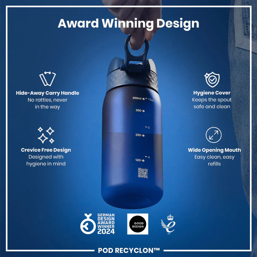 100% leak proof 350ml / 12oz BPA free sport water bottles with a smooth flow for spill-free hydration and hygienic full-flip top cover for one handed use on-the-go.