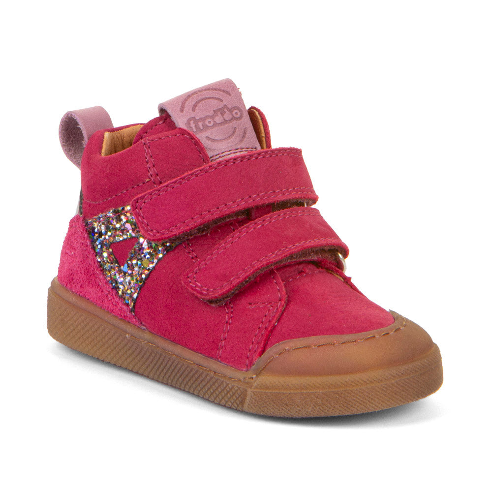 A gorgeous all purpose boot made with beautifully soft leather upper. It has a stitched rubber sole and a double velcro fastener for easy on/off. Lovely soft leather lining, padded collar and tongue for greater comfort, and a rubber toe bumper. The removable insole helps track growth.