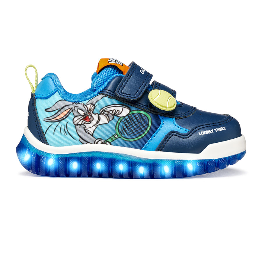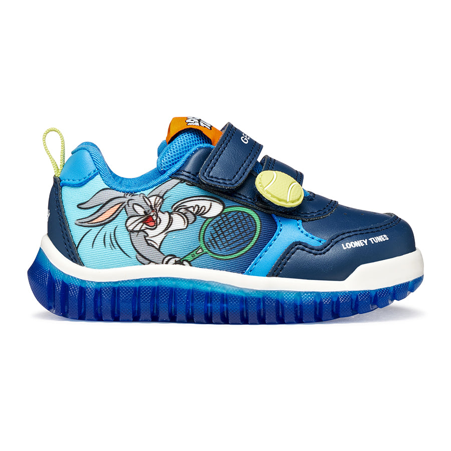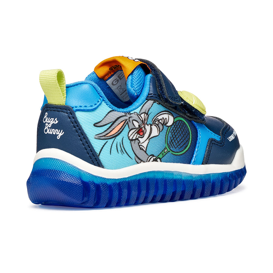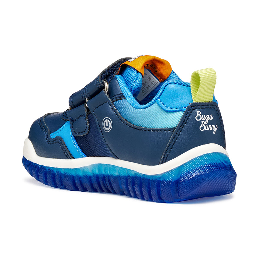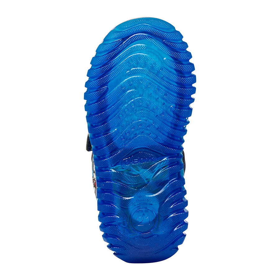 Babies’ low-cut sneaker with an attractive sporty design created under the partnership between Geox and Marvel. Cast in a versatile yet impactful combination of navy and royal blue, Lightyloo has been elevated with printed details and embellishments that take their cues from the iconic character Spider-Man. Comfortable and breathable, it has been made from a leather-effect material and features lights built into the transparent outsole.