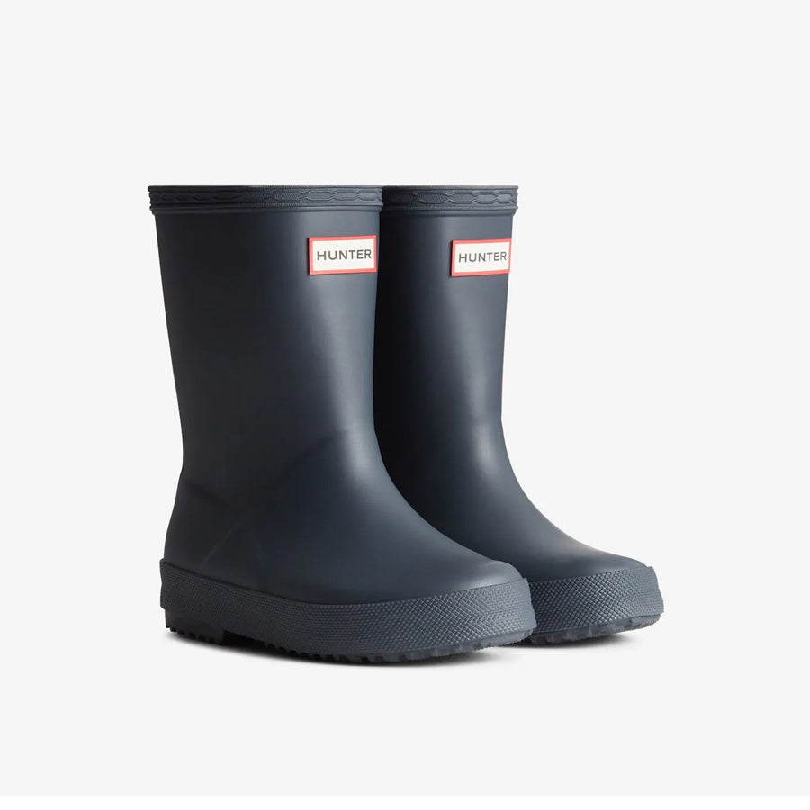 The Hunter Kids First is a specialised welly, designed for growing feet. A flatter sole and rounder foot ensure this style is easier to walk in. A wider upper leg offers freedom of movement, as well as making the putting-on and taking-off process easier.