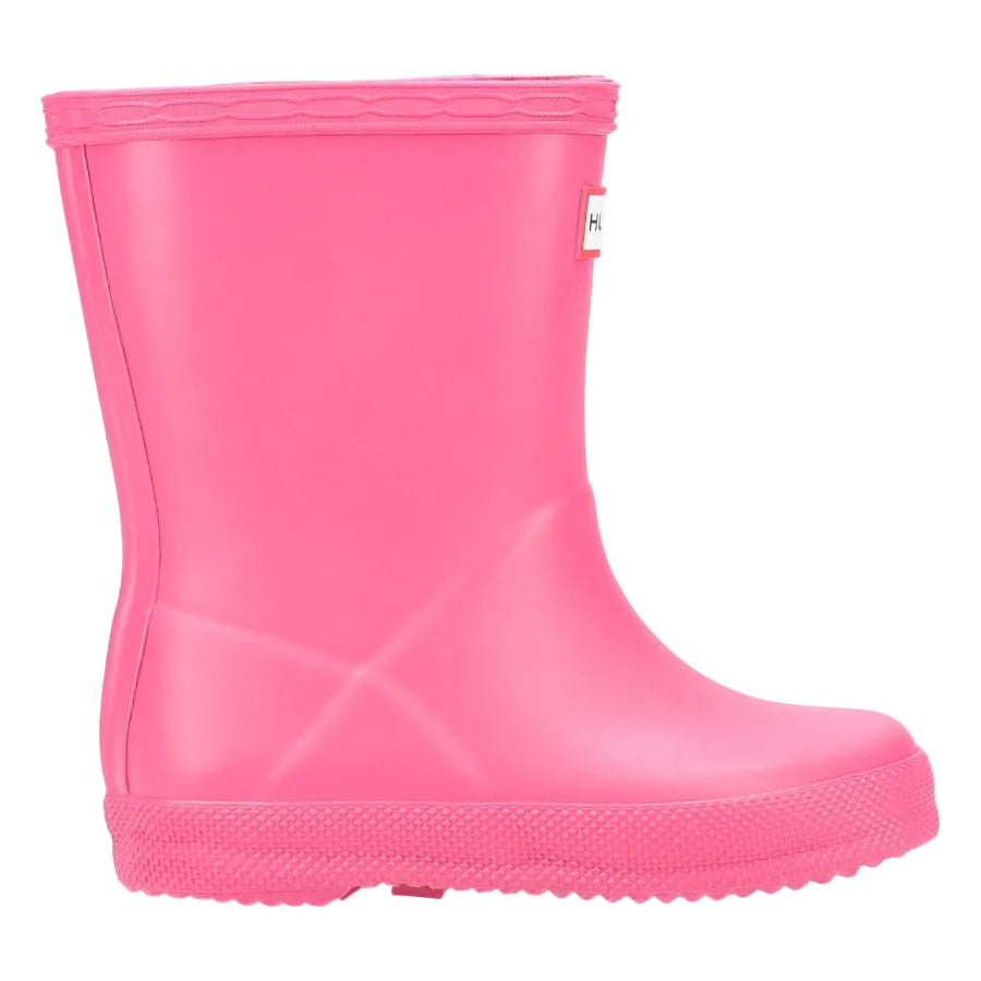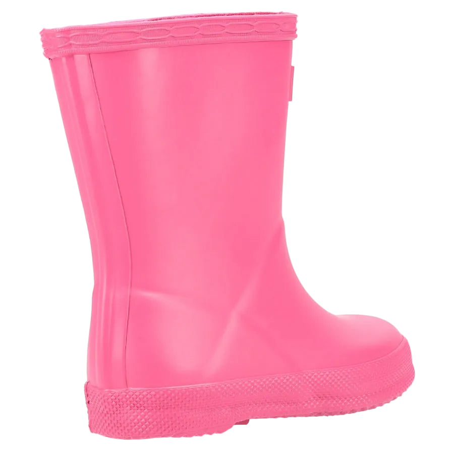 The Hunter Kids First is a specialised welly, designed for growing feet. A flatter sole and rounder foot ensure this style is easier to walk in. A wider upper leg offers freedom of movement, as well as making the putting-on and taking-off process easier.